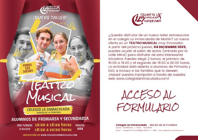 ¡INSCRÍBETE EN EL NUEVO TALLER DE TEATRO MUSICAL!