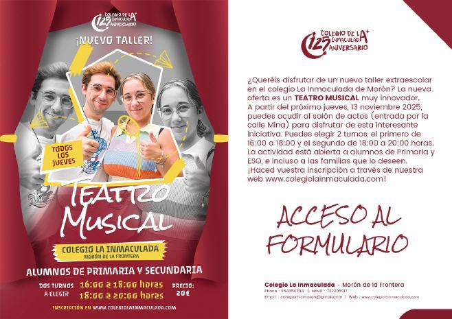 ¡INSCRÍBETE EN EL NUEVO TALLER DE TEATRO MUSICAL!