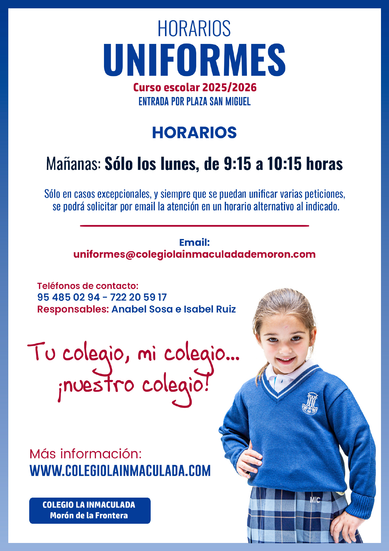 Se acerca el año 2025, donde el colegio La Inmaculada de Morón celebrará su 125 cumpleaños. ¡Cuánto le debemos a las Misioneras de la Inmaculada Concepción! Sin duda, y una vez creada la pertinente comisión… ¡estamos preparando algo importante con mucha ilusión! Decenas de eventos se irán organizando en este trayecto temporal hasta su fecha culmen, el 21 noviembre 2025. El primer acto lo tendremos en la capilla de nuestro cole, el próximo 15 noviembre de 2024, donde se celebrará una “Eucaristía Inaugural” que oficiará el obispo auxiliar de Sevilla, D. Teodoro León Muñoz. Además, este importante hecho coincidirá con la celebración del “Sacramento de la Confirmación”, donde alumnos y antiguos alumnos sellarán su compromiso con Dios y reforzarán su pertenencia a la iglesia cristiana.
